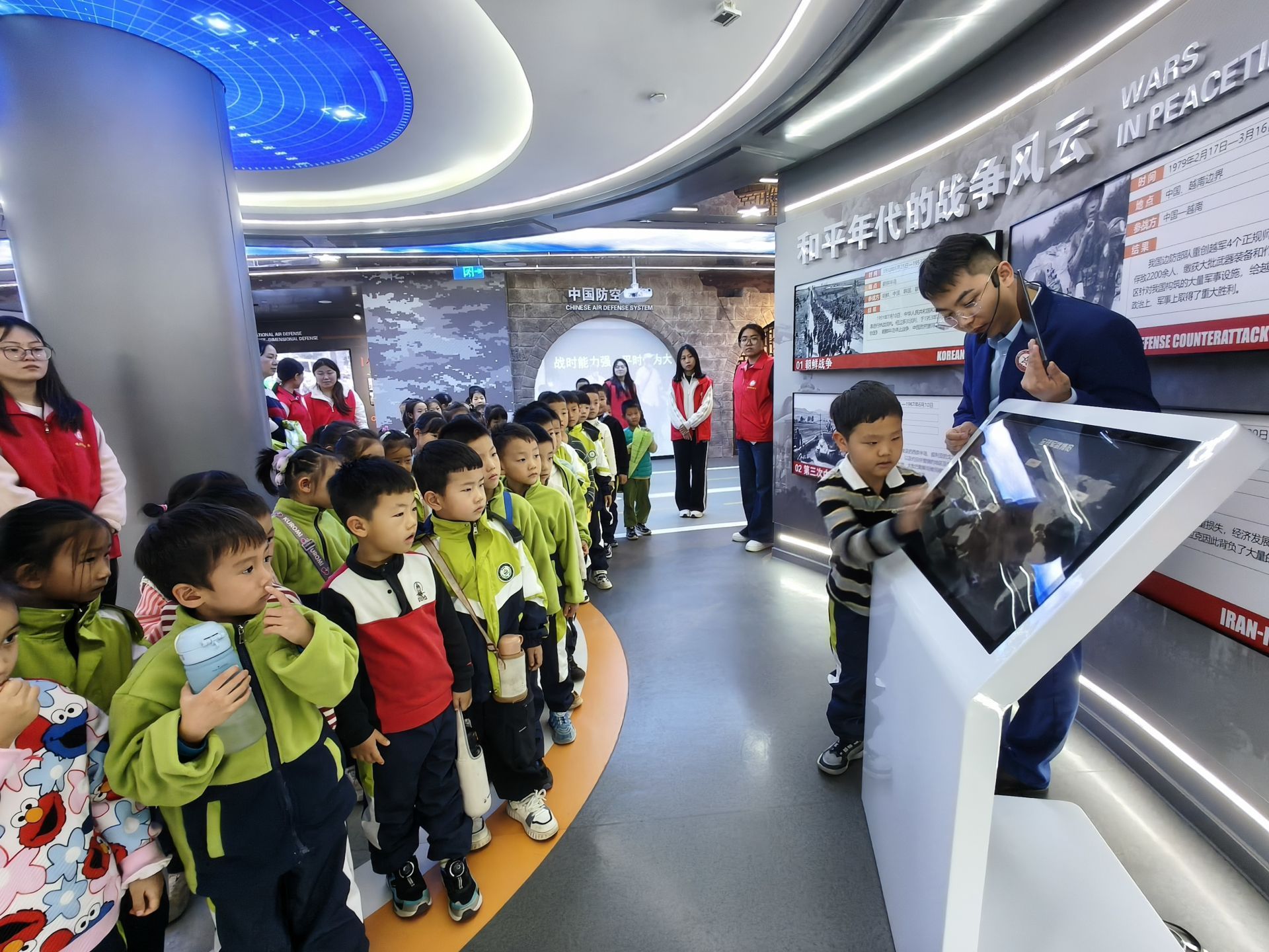 “小英雄們,歡迎來到‘全球守護(hù)者’指揮部!在你們踏入這扇門后,看到的將不再是秘密,而是責(zé)任。準(zhǔn)備好了嗎?第一站,世界防空體系,出發(fā)!”跟隨著講解員的引導(dǎo),探索從“世界防空體系”展區(qū)正式開始。時(shí)間軸與立體模型瞬間吸引了所有孩子的目光,他們湊上前,聆聽講解員用充滿童趣的語(yǔ)言講述防空發(fā)展的故事。