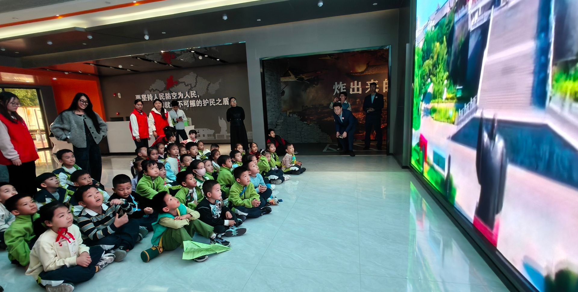 最讓孩子們興奮的環(huán)節(jié)當(dāng)屬沉浸式體驗(yàn)區(qū)。在動(dòng)感影院,當(dāng)燈光暗下,防空警報(bào)聲驟響,孩子們戴著的3D眼鏡中立刻呈現(xiàn)出逼真的空襲場(chǎng)景。伴隨著座椅的同步傾覆與轟鳴的音效,他們仿佛被瞬間帶入演練核心區(qū),在情不自禁的驚呼與緊抓扶手的反應(yīng)中,將應(yīng)急避險(xiǎn)的要領(lǐng)深植于心。