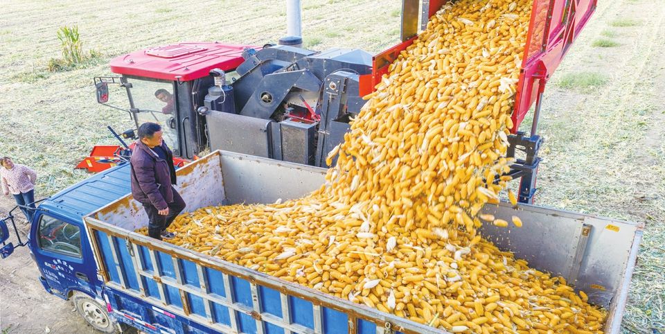 周強(qiáng)望著收獲的玉米喜出望外。記者 姜偉 攝