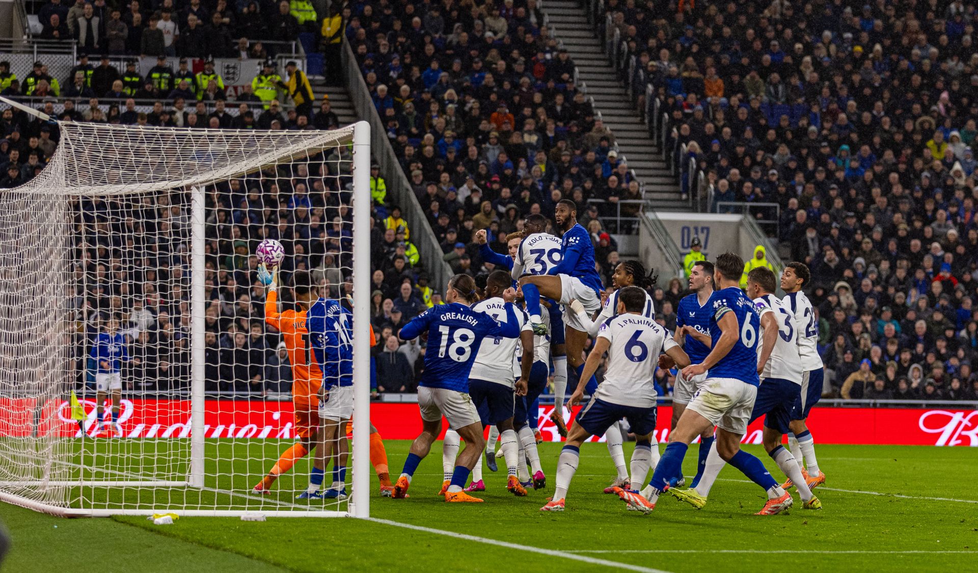 10月26日,埃弗頓隊(duì)球員奧布萊恩(上左)頭球破門,此球隨后被判無效。